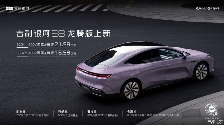 [本站 新车上市] 4月15日,银河E8龙腾版正式上市,新车共推出2款车型,售价分别为1…