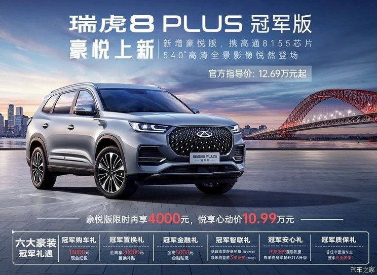[本站 新车上市] 日前,奇瑞瑞虎8 PLUS冠军版新增豪悦版上市,共推出5座和7座两款…