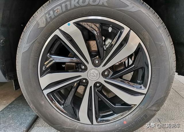 五辐刀锋状双色抛光铝合金轮毂,相当的精致,比起哈弗H6或者其它的对手,更能打动年轻消费者的心!