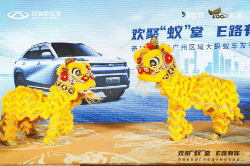 中午12点,在欣赏完当地特殊的舞狮表演后,“欢聚‘蚁’堂 e路有你”奇瑞新能源广州区域大蚂蚁车友答谢宴活动正式开启。