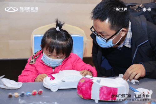 奇瑞新能源还为到场的小朋友们设置了亲子互动区,大朋友和小朋友一起现场绘画送祝福。在欢声笑语中,广州的寒冬也显得格外温馨。