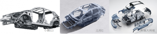小鹏G3和几何C两款车的在车身打造上钢材占了大部分,铝合金使用率远低于奇瑞大蚂蚁的86%。铝的密度是2.7,而钢是7.9,相比后者轻了2/3,回收率更高,成本也更高。