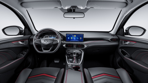 新车内饰提供黑红、黑灰两种内饰风格供用户选择,中控台采用“飞机座舱式”布局,赋予用户沉浸式的座舱体验;同时配备驾驶席歇脚板、前排座椅加热、座椅调节等人性化配置,此外,无钥匙进入、一键启动、手机无线充电等智能配置也让用户享受到更高效、便捷的行车生活。安全配置上,新车采用高强度一体笼式车身结构,全系标配ESP车身稳定系统、倒车雷达监测、限速提醒等多项主被动安全配置,同时也应用了ABS+EBD、HHC坡道辅助系统、AUTOHOLD自动驻车、高清360度全景影像等多项智能安全配置,跃级配置的应用皆可为用户带来全方位的保护。