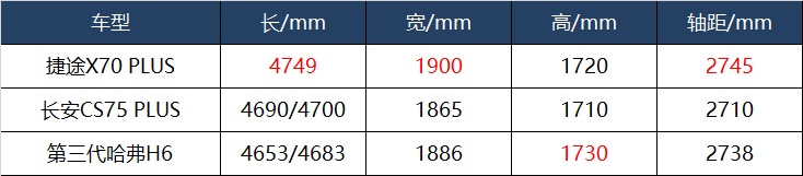 在同级别车型中,三款车型的空间水平都比较不错。但将数据放在一起就会发现,捷途X70 PLUS的尺寸要更大一些,从而进一步保障了车内空间足够充裕。