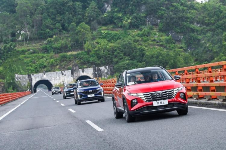 在面对贵州纷繁复杂的山区路况时,以第五代途胜L、第七代伊兰特所领衔的北京现代明星车队在SmartSense智心合一安全系统的加持之下应对自如。