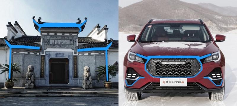 从正脸可以看出,新车的前脸造型更加古典大气。多边形的参数化格栅取名为“飞檐之翼”,内部用网状做填充,好似层层叠叠的飞檐,营造出壮观的气势,和中国古建筑特有的飞动轻快韵味,酷似鹰眼的LED大灯与格栅相连,搭配全新的雾灯造型,进一步拉伸了前脸的视觉宽度,犹如巍然而立的城门,抓住了徽派建筑中飞挑的屋檐与垂直的墙面产生对比的精髓,同时呈现出视觉反差的同时又能融为一体,带来活泼的元素,越看越大气。