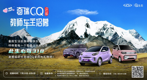 7月25日-8月8日,想要和奇瑞QQ一起寄情山水,邂逅川藏的教师车主朋友们,即可登录新浪微博关注@奇瑞新能源汽车官方活动微博,或扫描图上二维码参与“爱的大礼物”奇瑞QQ进藏教师车主招募活动,共同开启这份奇瑞QQ爱的大礼物吧!