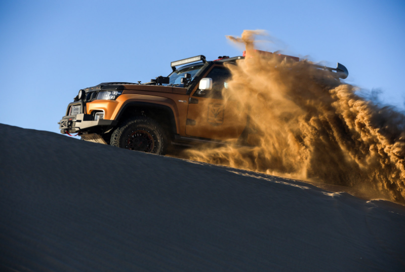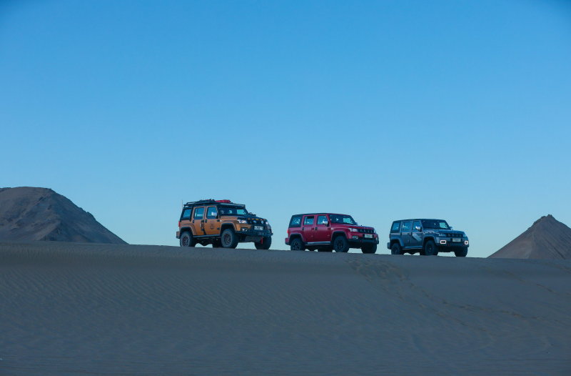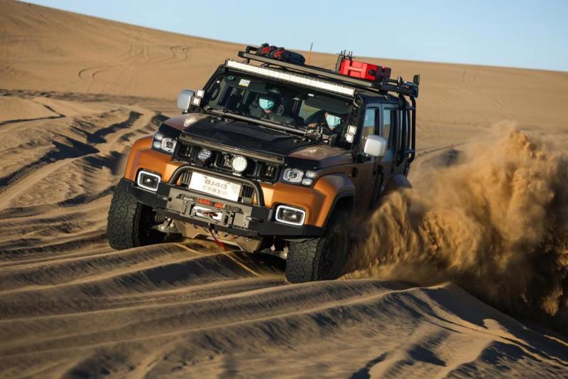 本次车队另一款车型BJ40刀锋英雄柴油版,在无人区同样有着先天优势,2.0D柴油发动机,最大功率120kW,最大扭矩380N·m,柴油刀锋原厂一箱油续航就超过了1000km。柴油的高扭矩低能耗的优势,在无人区可以说是越野利器,即使在不携带燃油补给的情况下,依然非常从容。如果升级了原厂副油箱,那么续航可以超过2000km,可以称得上穿越者心中的圣杯。