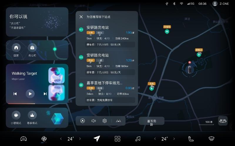 此次升级还增设了“补能路径自动规划”和“智慧找电”功能。车辆可根据剩余里程和路线环境,主动帮助用户规划沿途补能方案,并将充电站添加至导航行程中。“智慧找电”功能则可根据车辆位置,自动评估周边充/换电站的距离、收费标准和忙闲状态,为用户推荐时间和经济成本最优的补能站点。