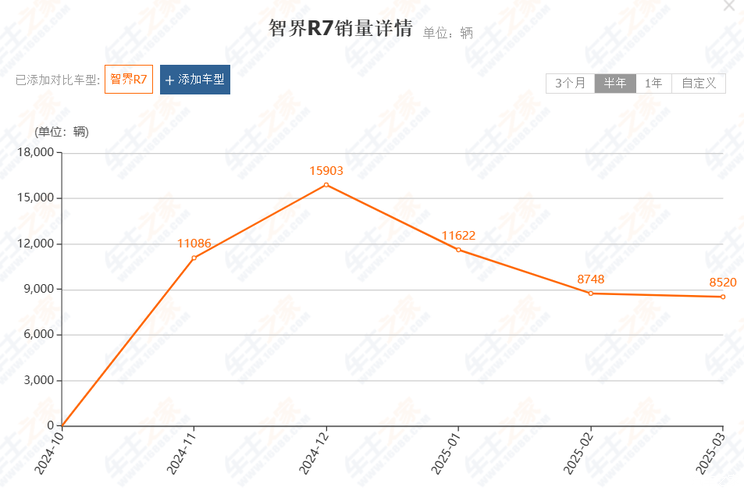 另据车主之家统计,智界R7的3月销量为8520辆,今年3个月销量持续下滑。这些信息表明,鸿蒙智行3月销量大概率没有超过2.5万辆。
