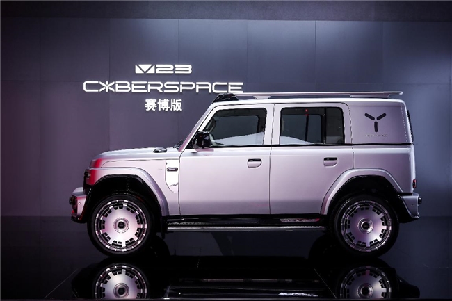 其次,全新超级V23对方盒子这一经典形态进行了颠覆性的重塑。不同于市面上仅形似方盒子的城市型SUV,全新超级V23不仅车身方正硬朗,还拥有接近1:1的黄金高宽比,搭配四轮四角的极致布局,让车身呈现出越级的体量感;突出的轮拱与21吋超大轮毂进一步强化了视觉冲击力,营造出高大挺拔的姿态。在致敬经典方盒子造型与标志性圆形大灯的同时,全新超级V23还创新性地融入了可变复古格栅、乐高像素尾灯等未来感元素,塑造出硬朗与精致并存的独特气场,无论是停在露营地还是穿梭于都市街头,都能成为众人瞩目的焦点。