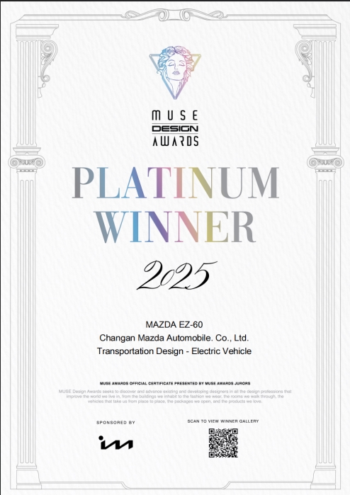 缪斯设计大奖(MUSE Design Awards)由国际设计协会(IAA)主办,被誉为全球工业设计领域的“奥斯卡”,以“表彰兼具创新性与实用性的设计作品”为核心标准,此次EZ-60斩获铂金奖和年度最佳设计大奖,核心源于其“功能与美学共生”的设计创新,尤其是九风道空气动力学设计,让EZ-60在行驶过程中减少风阻60.8 counts,CLTC续航提升41km,长途出行时节能效果显著;在高速行驶时,后轴可获得最高705N的稳定下压力,大幅提升行驶稳定性;同时,多风道的设计,有效梳理车身表面乱流,让风噪优化4dB(A),车内环境更加静谧,为用户营造舒适的驾乘空间,完美平衡了工业制造的严谨与艺术设计的温度,这也是该奖项首次将铂金奖授予15万元级合资新能源SUV。