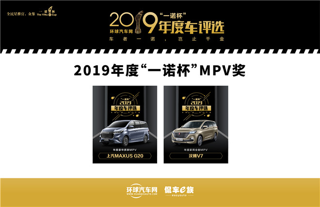 “一诺杯”MPV奖,分别是上汽MAXUS G20荣获年度豪华质享MPV、汉腾V7荣获年度家用全能MPV。