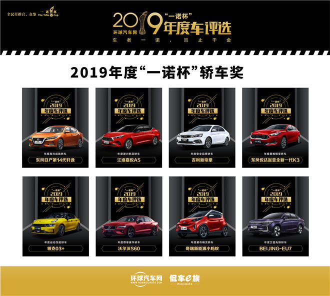 “一诺杯”轿车奖,分别是东风日产第14代轩逸荣获年度高光成就轿车、江淮嘉悦A5荣获年度潜力新品轿车、吉利新帝豪荣获年度安全品质轿车、东风悦达起亚全新一代K3荣获年度星推畅享轿车、领克03 荣获年度运动性能轿车、沃尔沃S60荣获年度尊享豪华轿车、奇瑞新能源小蚂蚁荣获年度都市精灵轿车、BEIJING-EU7荣获年度卫蓝先锋轿车。