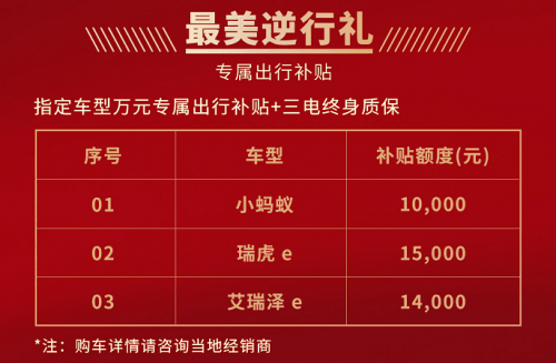 · 瑞虎e:享受补贴额度15000元