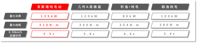 此外,菲斯塔纯电动搭载大陆永磁同步电机,最大功率135kW、最大扭矩310N.m,0-50km/h加速快至3.5s,这样的综合表现,不仅轻松领先几何A高维版、轩逸•纯电、朗逸纯电,更助车辆摇身一变“性能猛兽”,将多数性能版燃油车甩在身后,快速带年轻人寻觅星辰大海、诗和远方。