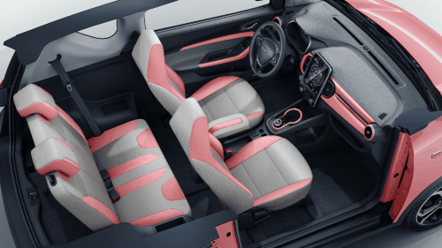 小蚂蚁女王版焕彩升级最大的亮点就是在外观上采用了大胆配色设计,在原有的星空蓝、熔岩红、皓月白、钛金灰、旭日橙五款颜色基础上,新增全新流樱粉,为“潮流新物种”增添了焕彩选择。浪漫的流樱粉外观让用户享受至臻宠爱,“X”型前脸时尚耀目,悬浮车顶潮流动感,充分展现出灵动潮流的越级动感。堪称小蚂蚁女王版设计点睛之笔的“天使眼”大灯,更是采用了炫酷的熏黑设计,个性十足。而同级独有的全景天幕,654.67mm×768mm的超大采光,抬头便可仰望星空,浪漫与科技感并存。