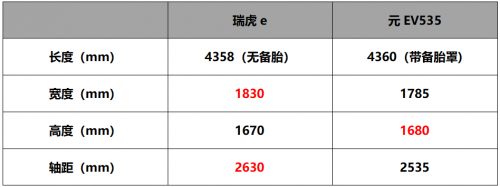 纵观元EV535和瑞虎e双车在长宽高及轴距上的深度对比,特别是实际车身长、宽及轴距上,瑞虎e都拥有明显优势。而综合整体驾乘空间对比,瑞虎e比元EV535足足多出至少一至两个行李箱大小的空间,可以让乘坐体验更加舒心。