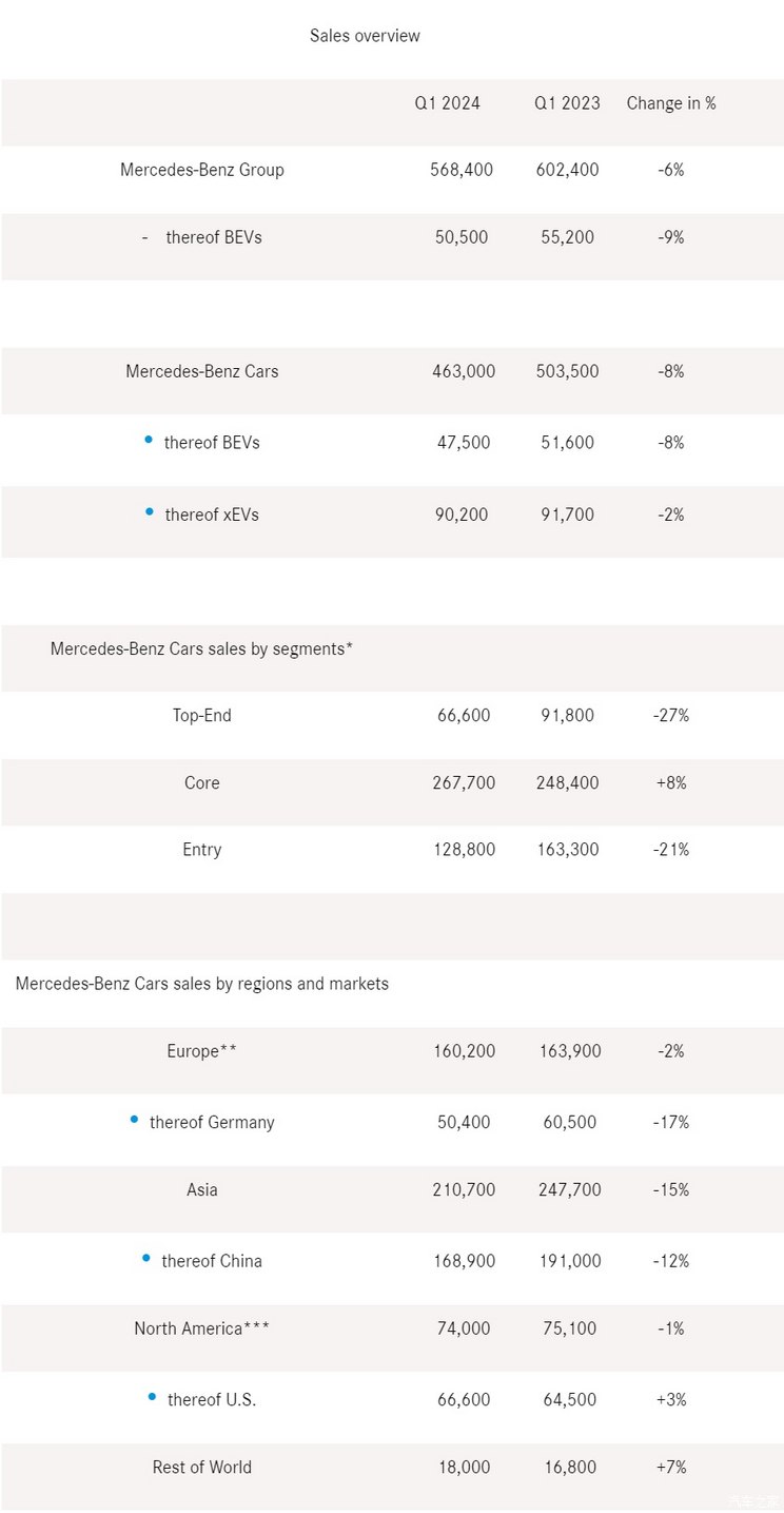 [本站 资讯] 日前,梅赛德斯-奔驰发布了2024年第一季度的销量数据。一季度奔驰全球总…