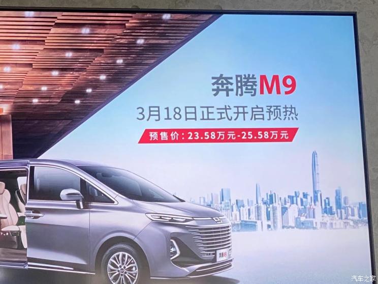 [本站 资讯]日前,我们从官方获悉,一汽奔腾M9将于3月18日开启预售,预售价为23.58-25.5…