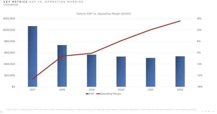 [本站 资讯]据外媒报道,特斯拉在过去五年中,成功将电动汽车的价格降低了一半,同时营业利润率从-15…