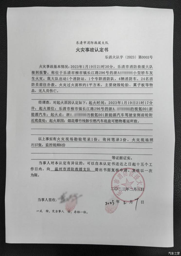 [本站 资讯] 在2023年1月19日晚,温州乐清发生一起极氪001着火事故,事发车辆着火时车上无…