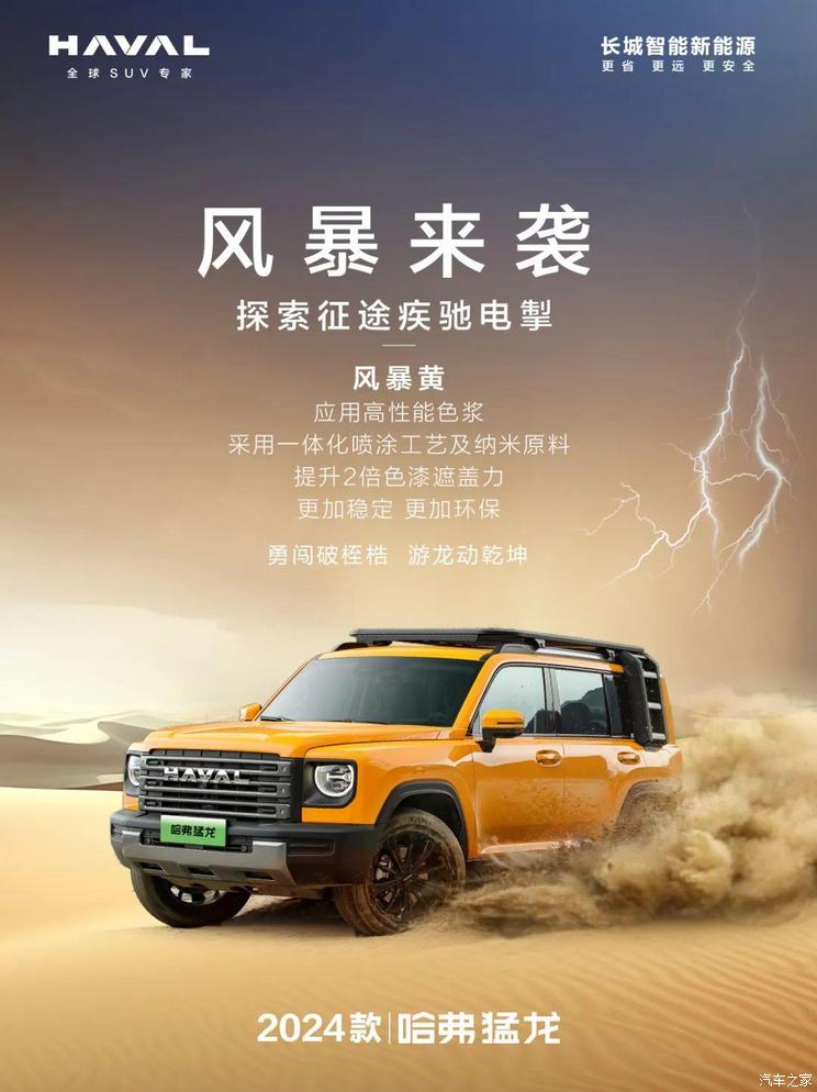 [本站 新车官图] 日前,我们从官方获悉,2024款哈弗猛龙将推出两款全新车身配色,分别…