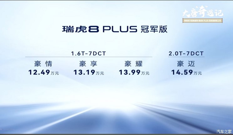 [本站 新车上市]11月10日,瑞虎8(全景看车) PLUS冠军版正式上市,新车推出4个配置车型,售价12.4…