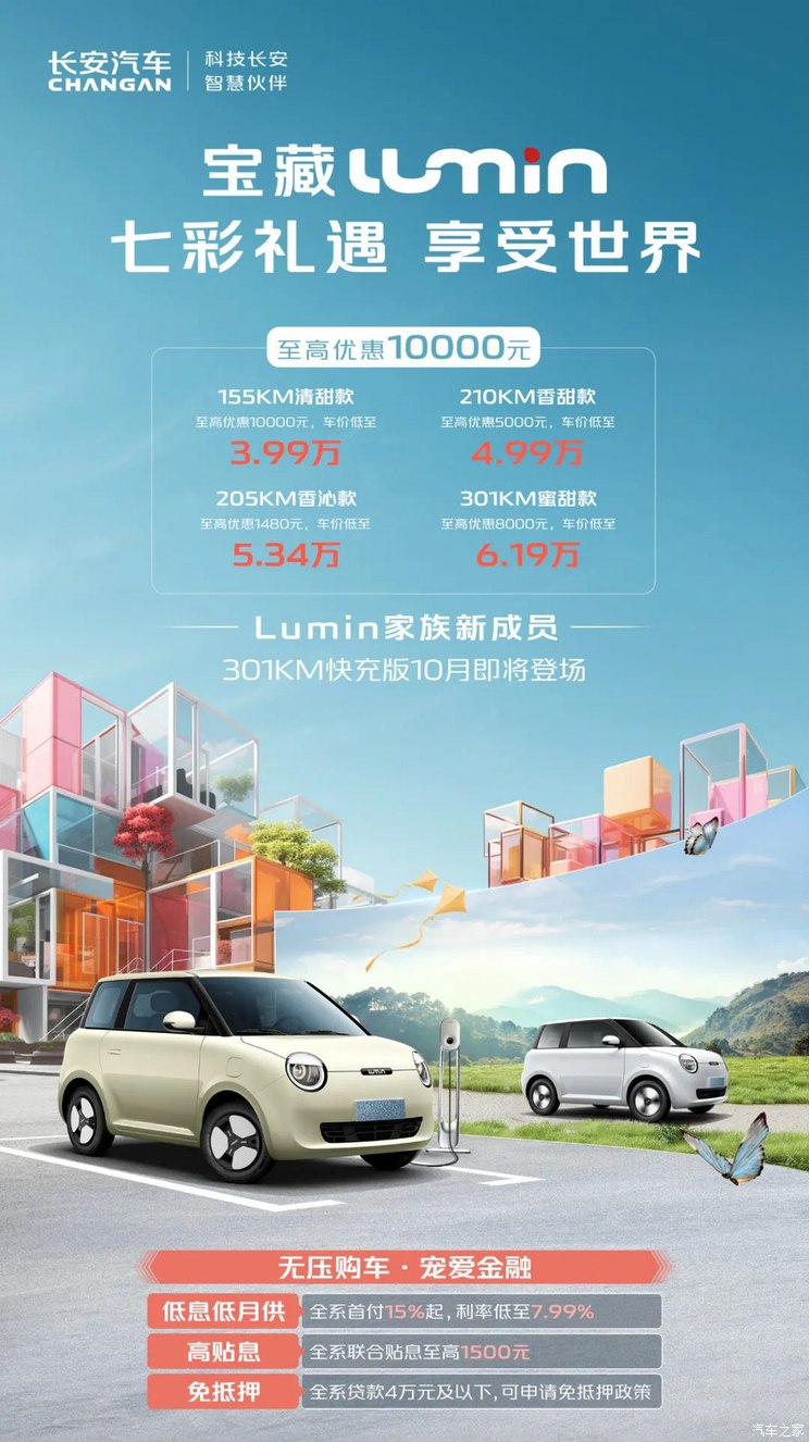 [本站 资讯] 日前,我们从长安新能源官方获悉,长安Lumin将新增一款301km快充版车型,该车将…