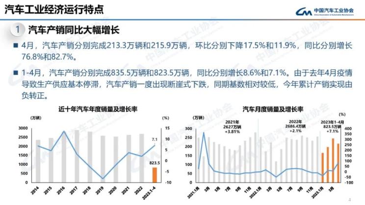 [本站 行业] 日前,中国汽车工业协会(以下简称中汽协)公布了最新产销数据:4月份,汽车产销量分别达到213.…