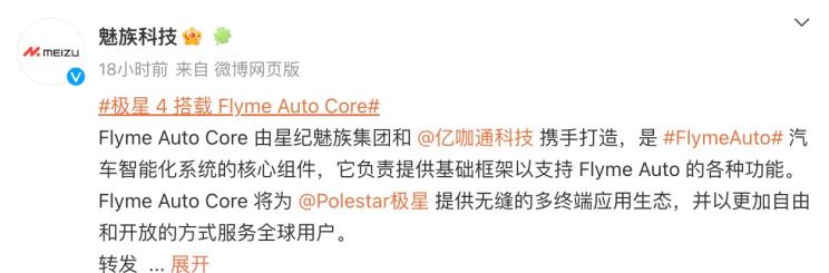 [本站 资讯] 近日,魅族手机宣布与Polestar达成合作,将为极星4提供Flyme Auto …