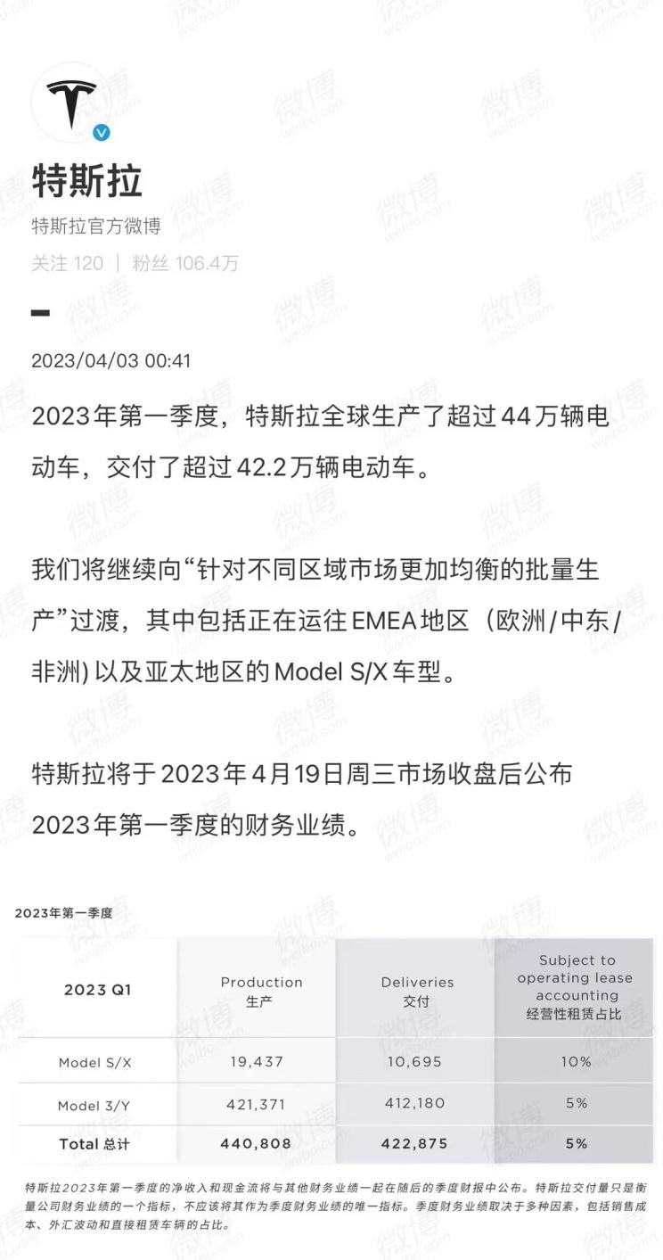 [本站 资讯] 4月3日,特斯拉官方公布其2023年一季度交付成绩。具体来看,特斯拉全球…