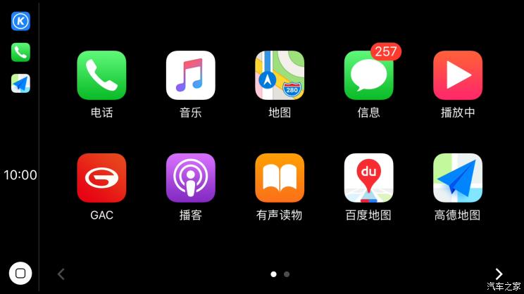 本次OTA升级,传祺GS8新增了CarPlay功能。通过CarPlay功能连接中控后,用户可以打开喜欢的App来导航、收发信息、拨打电话、听喜欢的歌、日历同步等。同时,该车还增加了便捷风量调节功能,进入系统桌面页面,双指上下滑动可快捷调节主副驾温度,现在增加三指快捷调节风量功能,通过上下滑动,快速调节空调风量。
