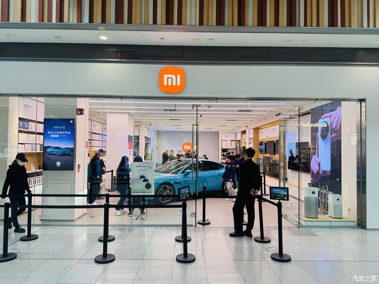 下一家店是位于北京市大兴区荟聚商城内的体验店。该门店是在小米之家零售渠道基础上打造的,门店内将汽车和科技生态产品进行融合。由于其店内产品的丰富性以及门店长时间的用户基础,所以店内客流量相比城市展厅更加密集,在门口出现了一定程度的排队现象。