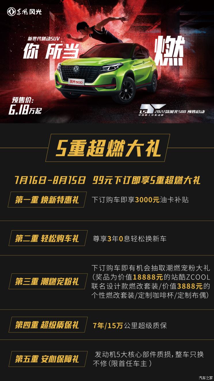 [本站 资讯] 7月16日,风光品牌官方宣布,2022款风光500正式开启预售,新车共推出六款车型…
