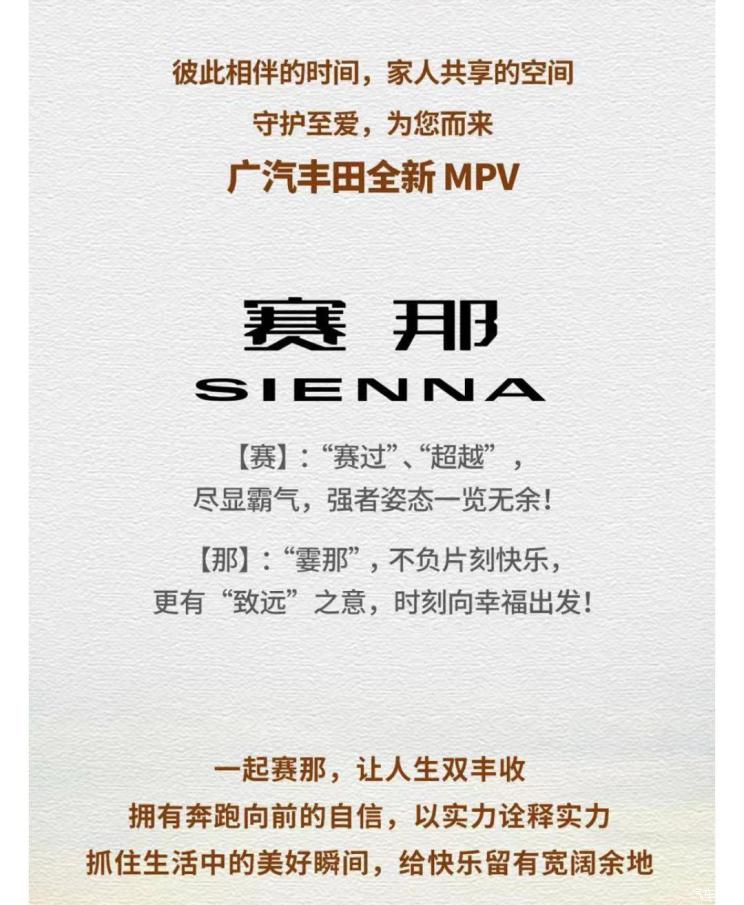 [本站 资讯] 6月20日,广汽丰田官方宣布了旗下即将推出的全新MPV车型Sienna的中文名字―…