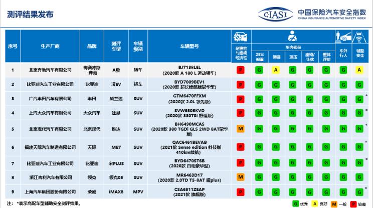 [本站 资讯] 6月9日,中国保险汽车安全指数管理中心完成了2021年第二批九款车型的碰撞测试,含…