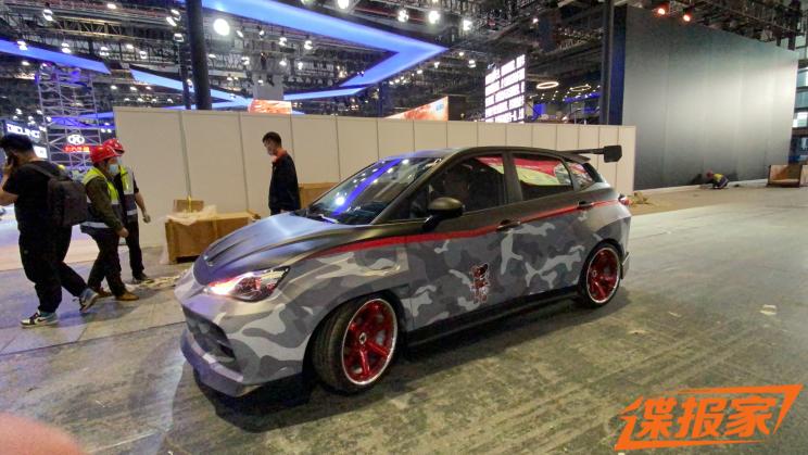[本站 资讯] 在2021年上海车展开幕前夕,我们在场馆内拍摄到了哪吒V车型的改装版。新车采用了非…
