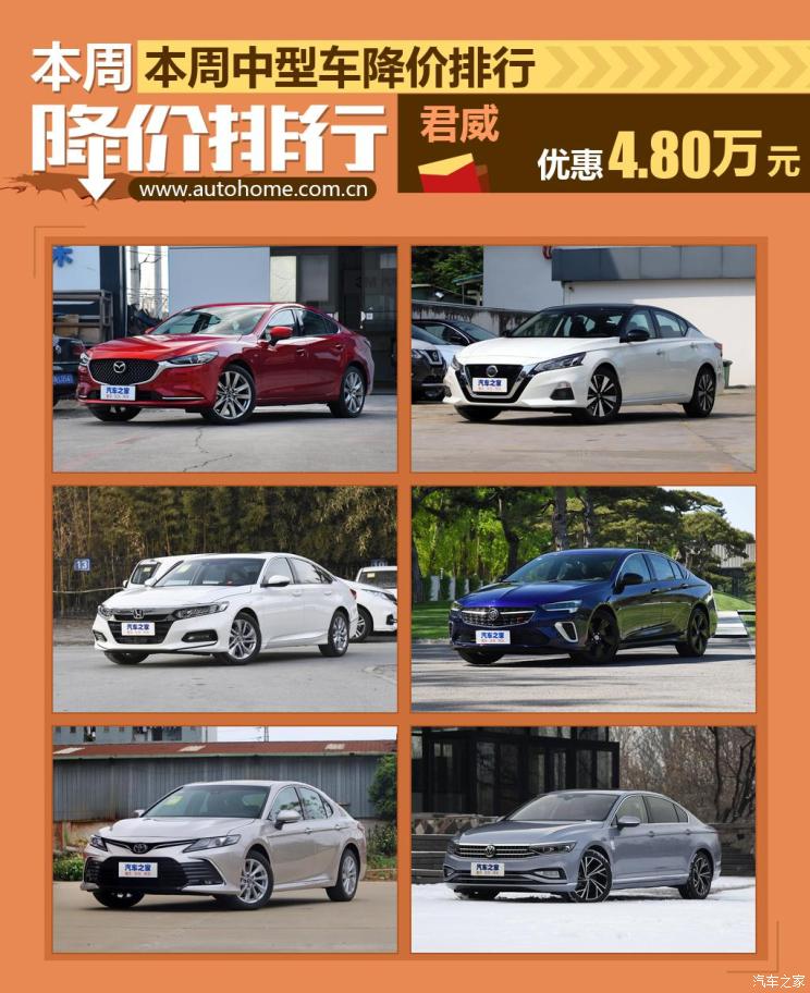 [本站 行情分析] 各位好,又到了一周《降价排行榜》时间了。本周为大家奉上6款中型车,其…