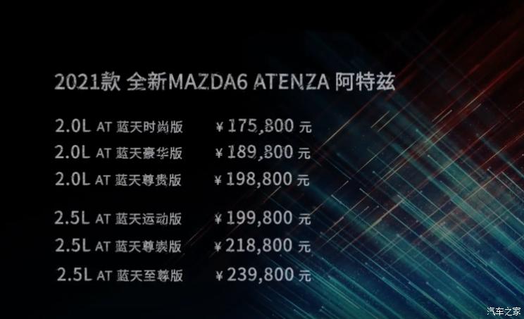 [本站 新车上市]2021年3月12日晚,新款马自达阿特兹正式上市,共推出6款车型,售价区间为17.…