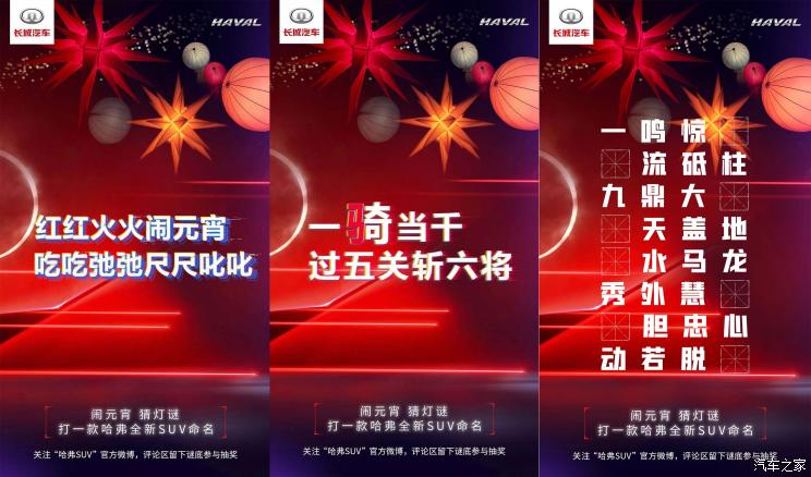 [本站 资讯] 2月26日(农历正月十五),哈弗官方正值元宵佳节时发布了一组“灯谜”海报…