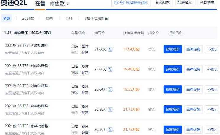 [本站 资讯] 日前,我们从经销商处获悉,奥迪Q2 L在不同地区均有降价优惠,部分车型降…