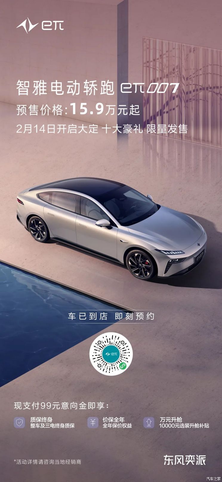 [本站 资讯] 1月30日,我们从官方获悉,东风奕派eπ007将于2月14日开启大定,现支付99元意…