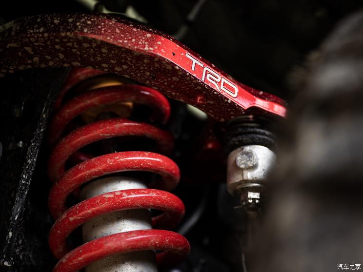 外观方面,采用Terra车漆颜色的Tacoma TRD Pro车身主色调为红棕色,但在轮眉、车顶、进气格栅、后视镜和发动机盖进气口依然保留黑色,整体色彩搭配渲染出硬朗的越野氛围。简单回顾,TRD Pro在外观上采用家族式设计风格,六边形格栅配合梯形下包围展现出了强悍的气场。不同版本车型的前脸也有一些不同,比如TRD Pro的前进气格栅采用的是“TOYOTA”标识,其它车型则是丰田品牌LOGO。